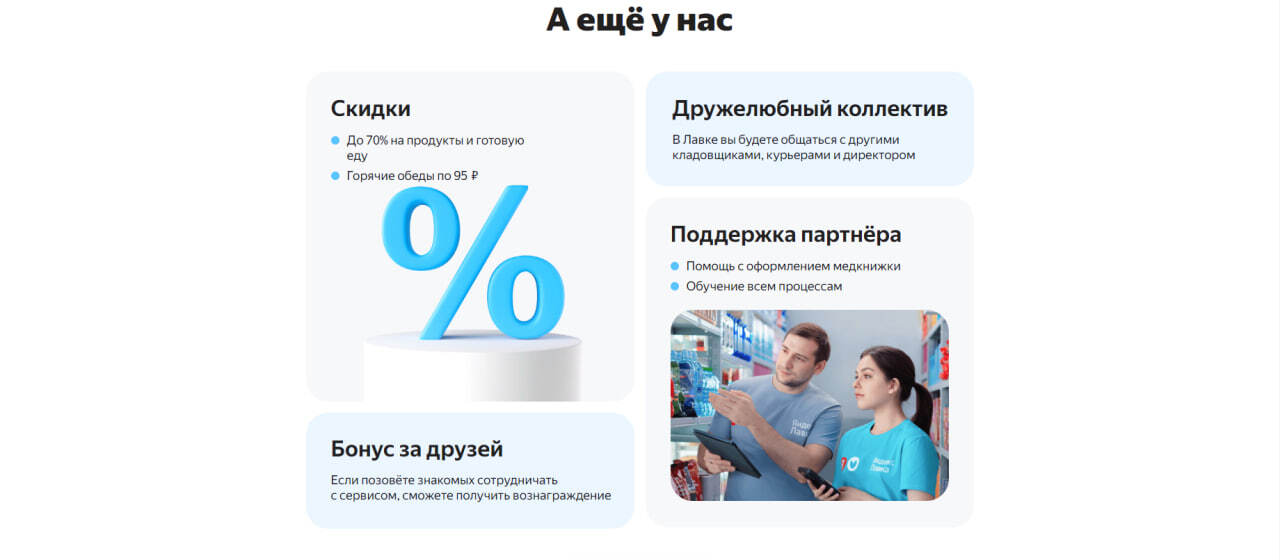 Яндекс Лавка — это сервис быстрой доставки продуктов, готовой еды и товаров для дома. В разных районах города есть дарксторы — специальные магазины без покупателей, где хранятся товары. В дарксторе есть кладовщики и сборщики — они комплектуют заказы, курьеры — они забирают и доставляют заказы клиентам, повара — они готовят блюда, а также директор и заместитель — они контролируют процессы.